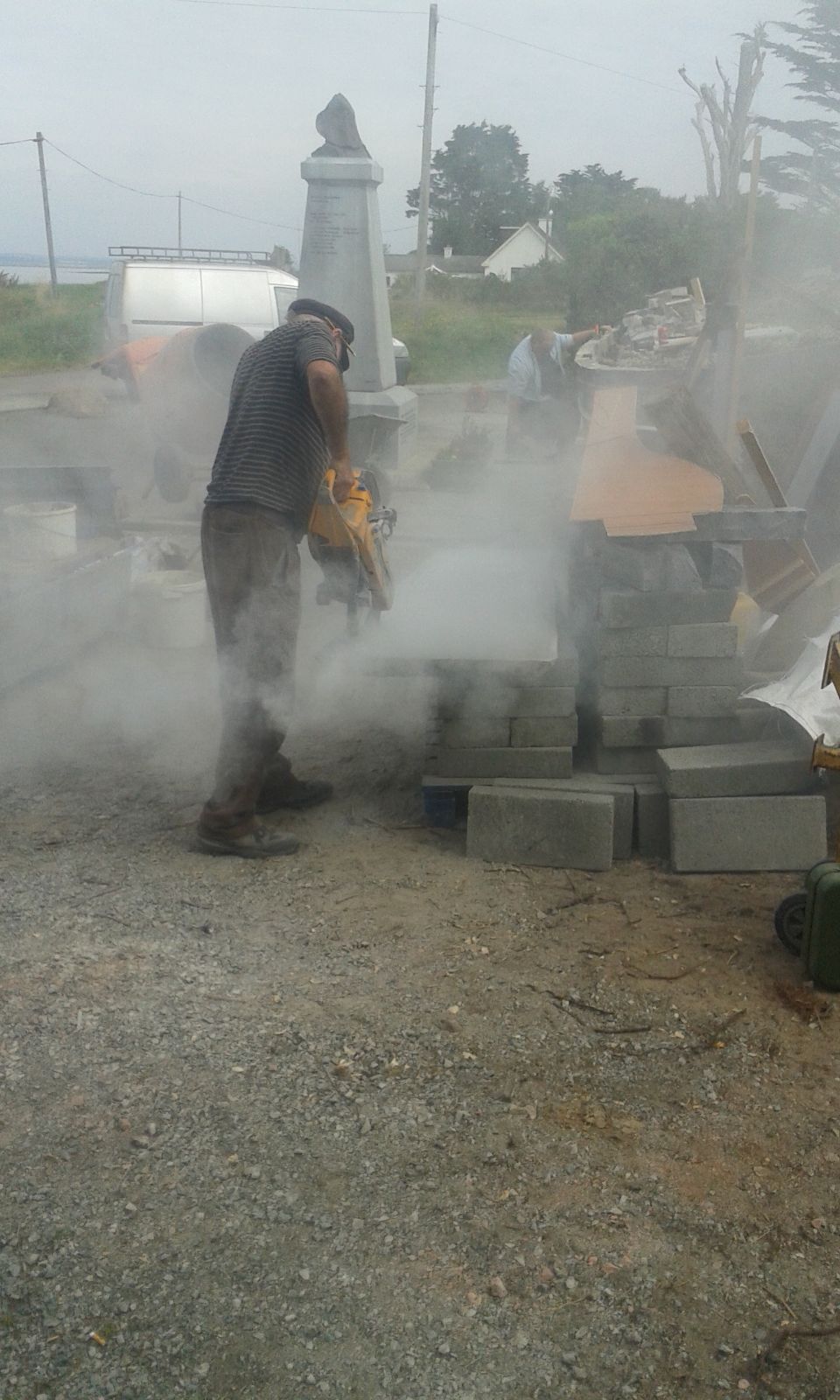 After the 2016 wreath laying ceremony, the committee felt that the monument needed some upgrading. Some minor work needed to be done i.e. removing the tarmac and boulders and replacing with new bollards. Cllr. Ger Carthy was approached for advice regarding funding and following several meetings, Cllr. Carthy confirmed that Wexford County Council would support a complete refurbishment of the area, including a new granite area and new brick work as well as wheelchair access and new bollards. The committee would then look after refurbishment of the back drop - a new scale model of the James Stevens No. 15 Lifeboat in stone. Work commenced under the watchful eye of Billy Doyle.